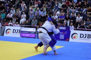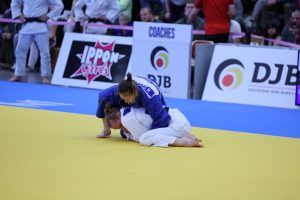 Kathrin Krause, Dritte der Deutschen Juniorenmeisterschaften, startete mit einem Sieg gegen Sophie Eifert (FC Stella Bevergern) in den Wettkampf. Danach traf sie gleich auf Seija Ballhaus (TSV Großhadern) und damit auf die amtierende Europameisterin. Kathrin mußte sich der Favoritin geschlagen geben. Konzentriert ging sie in die Trostrund. Nach Siegen gegen Marina Callsen (TSV Appen), Darja Dorowskich (Jahn Nürnberg) schaffte sie den Einzug in das kleine Finale. Mit Maya Patané (UJKC Potsdam) traf sie hier auf eine „alte“ Bekannte, mit der sie sich schon zahlreiche Randoris geliefert hat.  Mit O-Uchi-Gari und Soto-Make-Komi Techniken konnte sie den Kampf für sich entscheiden und gewann die Bronzemedaille.