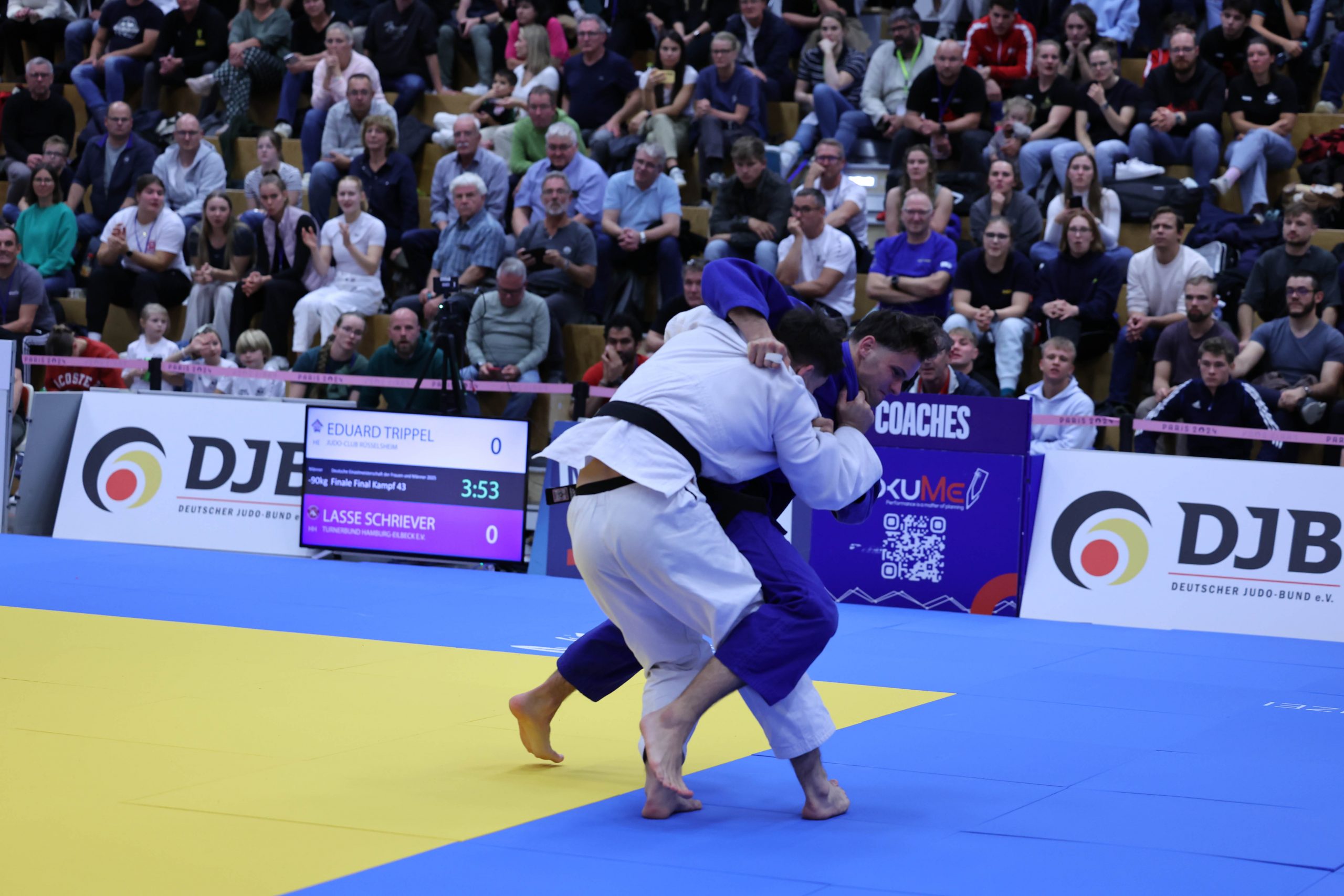 Lasse Schriever überzeugte in der Klasse bis 90 kg mit einer sehr guten Leistung. Nach Erfolgen gegen Leon Mutschler (Heidelberger JC), nach nur 17 Sekunden mit einem Ko-Soto-Gake, Lukas Ohneiser (TSV Großhadern)  und Maximilian Erler (JSC Heidelberg) mit Hüftwurf, stand Lasse im Finale. Sein Gegner hier war kein geringerer als Eduard Trippel (JC Rüsselsheim), der Silbermedaillengewinner bei den Olympischen Spielen in Tokio. Wie schon in den vorangegangenen Kämpfen, lies er auch im Finale keinen Zweifel aufkommen, dass er gewinnen möchte. Er griff unbeeindruckt an und konnte den Kampf nach einer Wurftechnik, bei dem sich sein Gegner verletzte, mit einem Haltegriff beenden.  Nach zwei Meistertiteln bei den Junioren, war das der erste Titel bei den Männern, super.